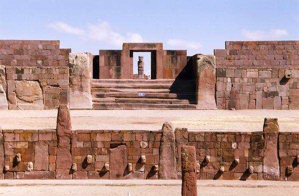 Tiahuanaco is 72 km/45 miles - 1 hour from La Paz, the trip passes through the Bolivian highlands were you can see the Aymara Indians way of life. It was one of the oldest American cultures, Carbon 14 dating give us an average age of 1580 BC to 1150 AC. It is considered the cradle of the American man and one of the most advanced cultures in development at that time. Their main constructions are: the Kalasasaya temple with the main stone work done like the Gate of the Sun, the monoliths Ponce and Fraile, the Akapana pyramid and the semiunderground temple.